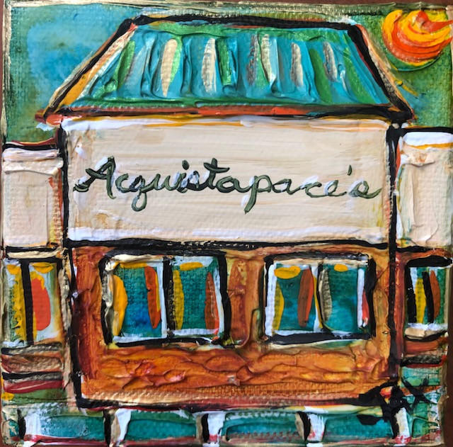 4 x 4 x 1.5" original, highly-textured painting on canvas with sawtooth hook on back for