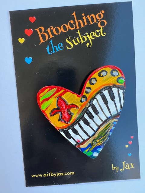 Hand-painted Art brooches by Jax - add some snazz to every outfit! Every brooch is uniquely designed, so no two are alike. You can expect different, surprise features on your brooch every time you order, Give them to your favorite people!